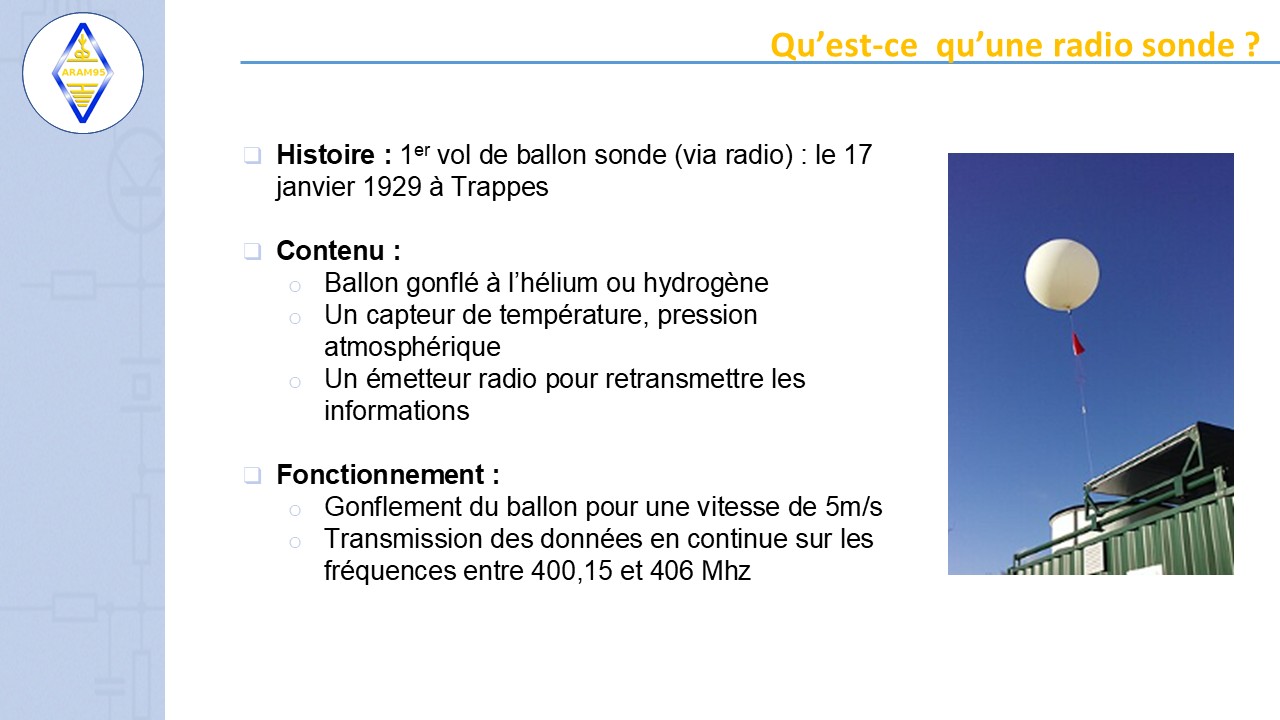 - présentation et suivi des radios sondes … si possible, on va les récupérer pour l’expérience et (pour dépolluer)